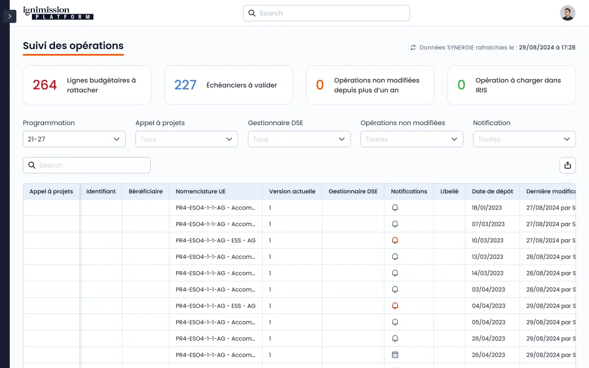 La Région Île-de-France a implémenté Ignimission Platform pour gérer les fonds alloués par l’Union Européenne. Cette solution a permis à la région de centraliser la gestion des projets financés par l’UE, notamment dans les domaines de la recherche et de l’écologie. Grâce à l’application, la région a pu planifier efficacement la consommation des enveloppes budgétaires par priorité européenne et automatiser le processus d’allocation des fonds aux projets.